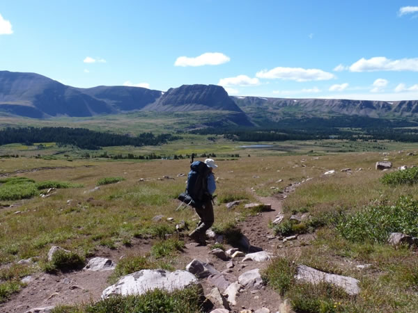 Eric making his way north along Forest Trail 117, with Henry's Fork Basin in the middle distance.