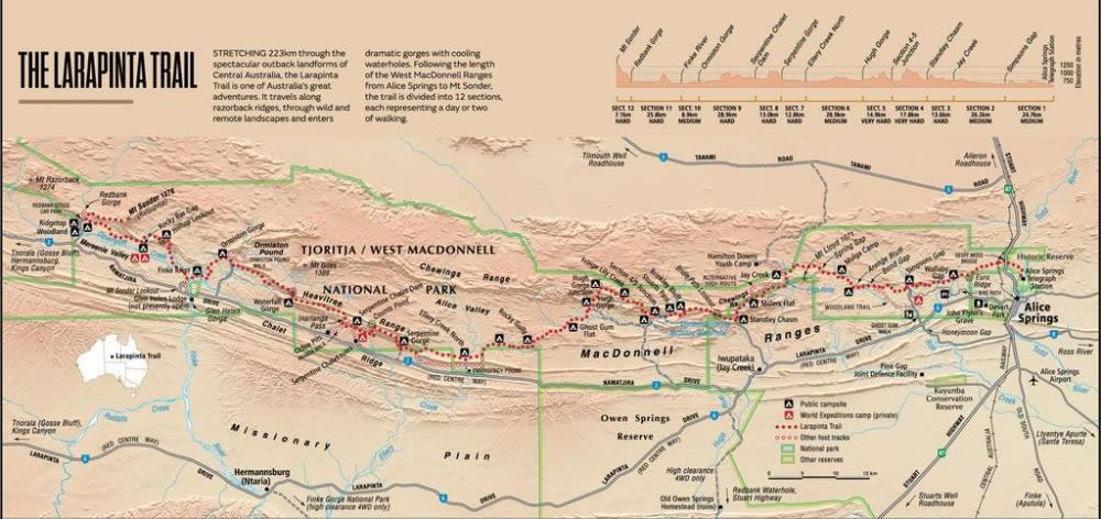 map of the Larapinta Trail has more information about the trail, its surroundings and whereabouts.