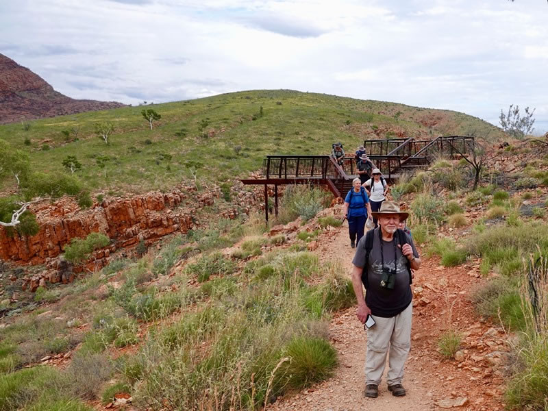 Bob, Melissa, Deb, Stephen, Libby, and Ella leaving the Ormiston Gorge viewing platform and …
