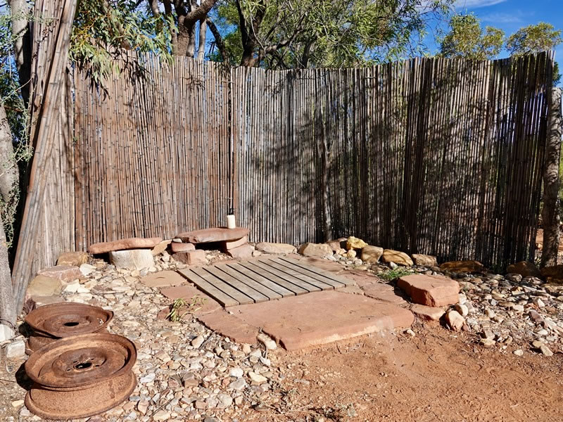 The camp’s shower: you brought a canvas bucket of warm water to this sheltered, sunny nook and then poured the water over yourself while you were standing on the wooden slats.