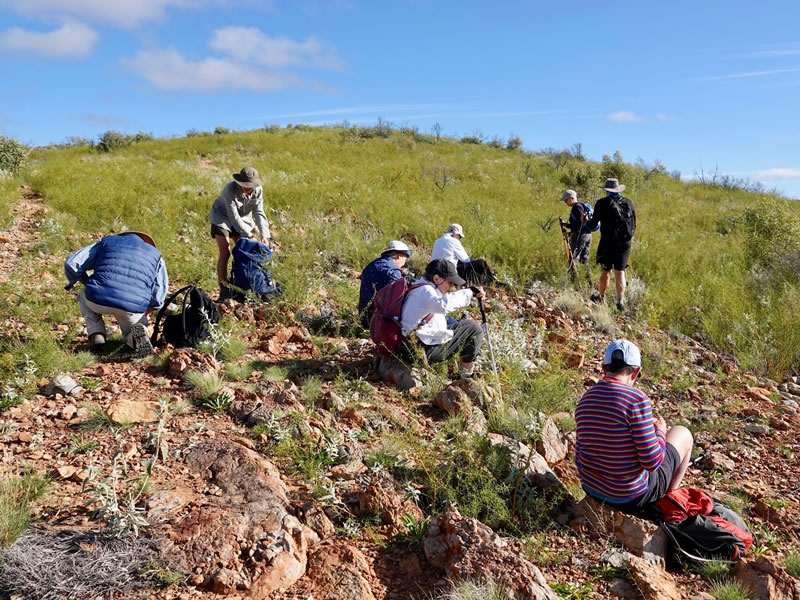 Day 2 (Saturday, 29 April 2023) – Section 8 of the Larapinta Trail (i.e., from the Serpentine Gorge Carpark to the Serpentine Chalet Dam): At 9:15 am – an hour and a half after we left the Serpentine Gorge Carpark – we reached the Heavitree range’s ridgeline and stopped for a rest, a drink, and some snacks. |