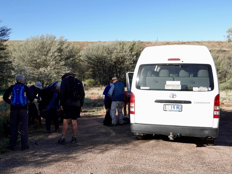 Day 3 (Sunday, 30 April 2023) – The Aranda Walk to Inarlanga Pass, and then on Section 9 of the Larapinta Trail to the Serpentine Chalet Dam: Our third and fourth days on the Larapinta Trail were easier than the first two. As a result, we woke up later on Day 3, had breakfast later, and left the campsite later than we’d done the previous day. It was almost half-past-eight when Ella dropped us off at the Ochre Pits carpark to start our third day’s walk. |