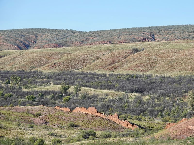 Day 3 (Sunday, 30 April 2023) – The Aranda Walk to Inarlanga Pass, and then on Section 9 of the Larapinta Trail to the Serpentine Chalet Dam: … looked as though it could have been a map of this landscape with its curves of stone, mulga scrub, spinifex, and parallel rock ridges. |