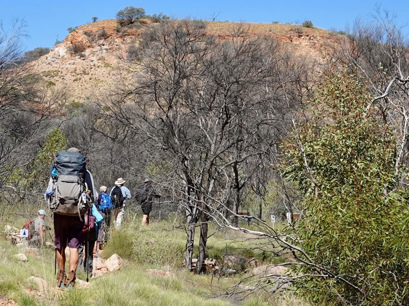 Day 3 (Sunday, 30 April 2023) – The Aranda Walk to Inarlanga Pass, and then on Section 9 of the Larapinta Trail to the Serpentine Chalet Dam: … back to the junction of Section 9 of the Larapinta Trail and the Aranda Walk (which can be seen in the lower right-hand corner of the picture). |