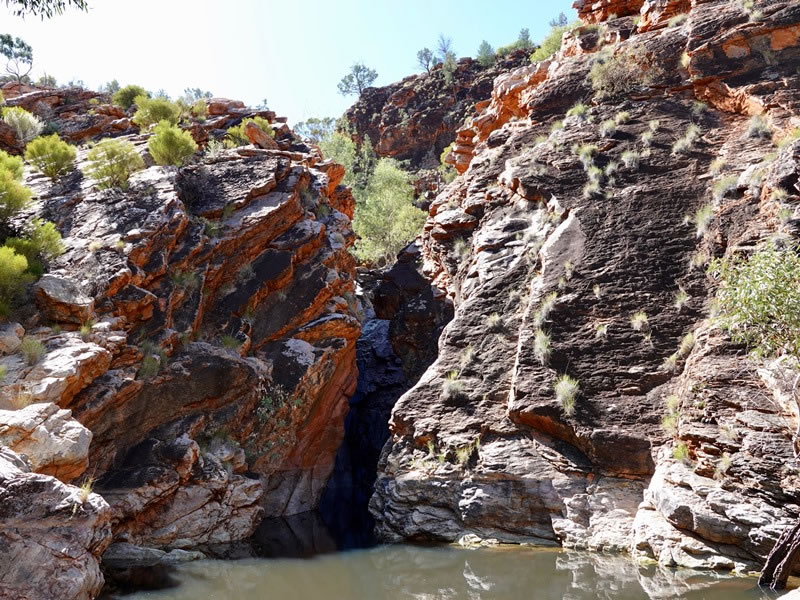 Day 3 (Sunday, 30 April 2023) – The Aranda Walk to Inarlanga Pass, and then on Section 9 of the Larapinta Trail to the Serpentine Chalet Dam: The dam was built to provide water for the Serpentine Chalet – a pioneering tourism venture – in the 1950s. However, the dam was a failure: it leaked and couldn’t provide enough water, and the Chalet closed in 1963. |