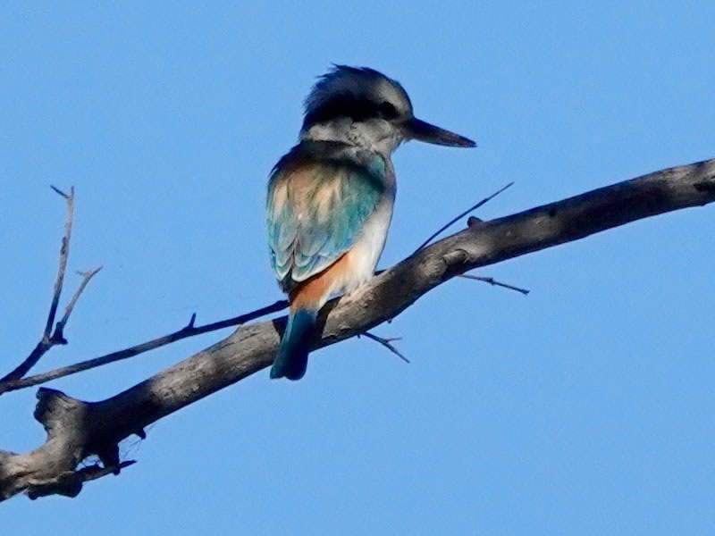 … a red-backed kingfisher perched on the branch of a gum tree.