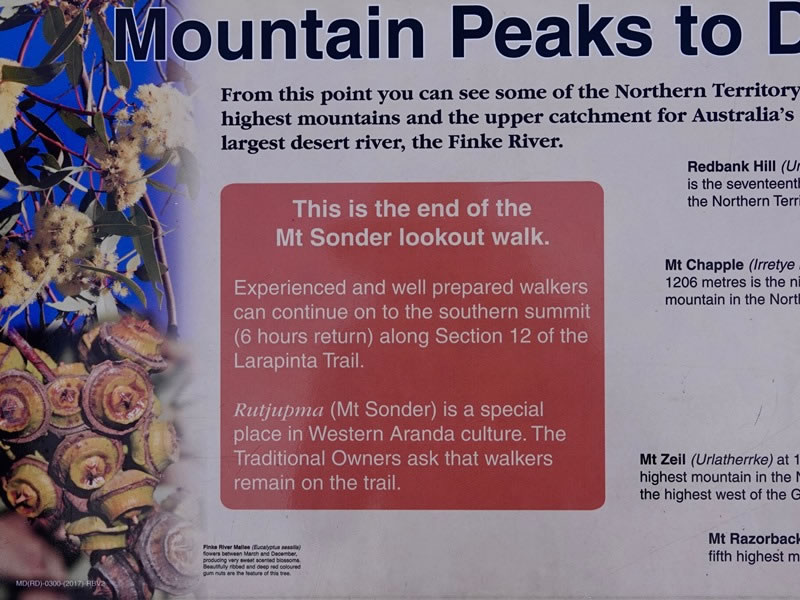 Day 5 (Tuesday, 2 May 2023) – Section 12 of the Larapinta Trail (i.e., climbing Mt Sonder): The Saddle “is the end of the Mt Sonder lookout walk”, but we felt that we were “experienced and well prepared” enough to be able to carry on to the summit of Mt Sonder. |