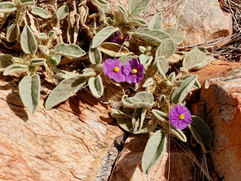 … the flowers of a bush tomato plant growing in particularly inhospitable surroundings.
