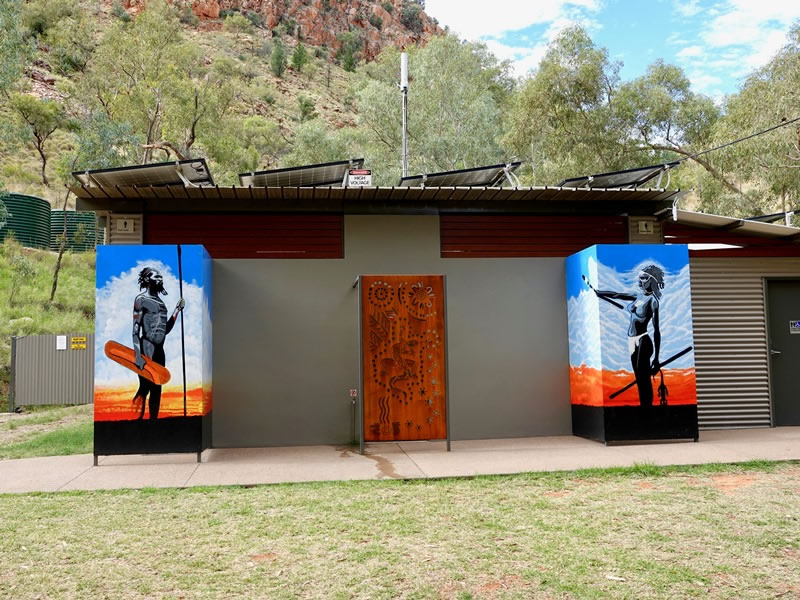 Shortly after 1:30 pm, we got back to the public carpark where the colourfully decorated toilets are a tourist attraction in their own right.