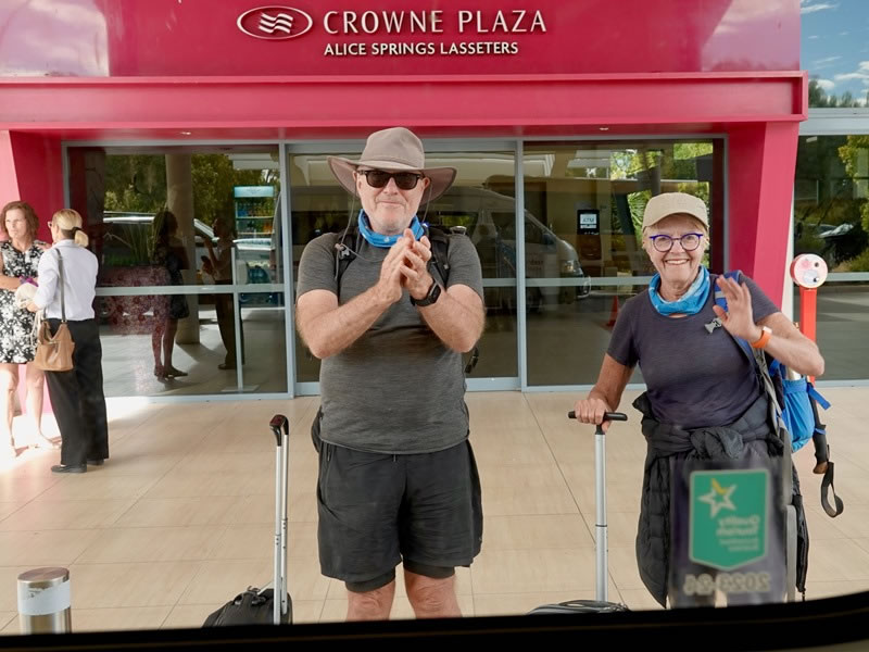 Stephen and Libby were the first to be dropped off at their hotel. Our six-day Larapinta Trail trip was over – except for one final thing …