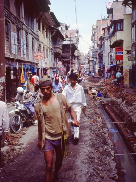 In Kathmandu: Nepal’s capital city was crowded and chaotic. Pedestrians and motor-cyclists jostled for space in the city’s narrow streets. In May 1991, Nepal held democratic, multi-party parliamentary elections for the first time in over 30 years, and near the right-hand edge of this photograph (next to a man in a light-blue shirt) there’s the painted symbol of one of the political parties that contested the election – namely, … |