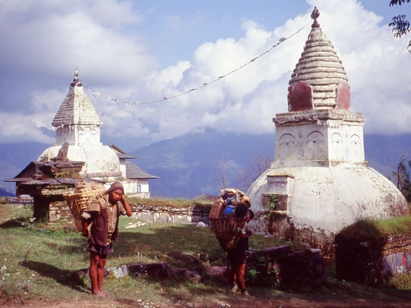 Bhandar’s two small stupas. Bhandar is 2,194 metres above sea-level.