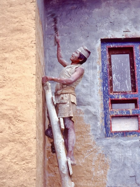 During the early afternoon we passed through an attractive village called Kharikhola, where we were amused to see this man painting both his house and himself.