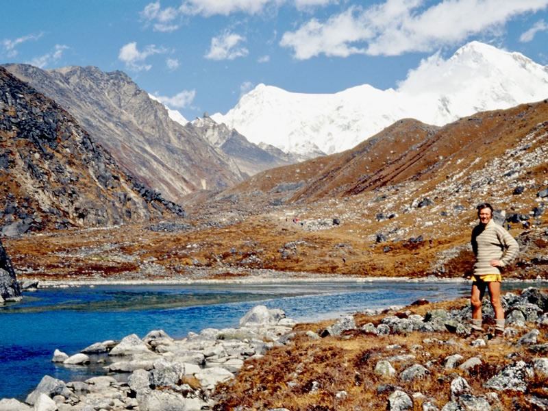The valley that the Ngozumpa glacier flows down contains five lakes, and this photograph of me standing beside the first lake (