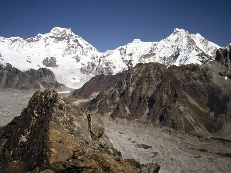 … when I was on Gokyo Ri’s summit, I took an almost-identical colour version of Alfred Gregory’s “Gyachung Kang from Gokyo Ri”.