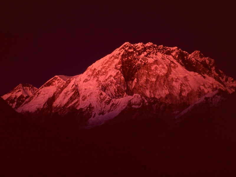 Wednesday, 23 October 1991 – From our Lobuje East base camp to our advanced base camp: A short while later, the south face of Nupste (7,855 metres) was an impressive red. Knowing we’d be starting our summit attempt early the next morning, we all went to sleep early. I later wrote in my diary, “Despite the fact that I was sleeping above five-thousand metres for the first time (we were higher than Kibo Hut on Mt Kilimanjaro [it’s situated at an altitude of 4,730 metres above sea-level]), but possibly because of the fact that I’d been over 5,000 metres on six successive days, I slept extremely well.” |