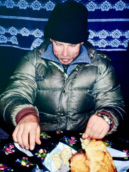 Thursday, 24 October 1991 – Our Lobuje East summit attempt: The day that we failed to reach the summit of Lobuje East was Ralph’s 32nd birthday, so – after we had all arrived back in base camp – Ralph shared a small bottle of Jim Beam with us, and at dinner the cooks presented him with a surprise birthday cake. As I noted in my diary, “we were in bed by 6:50 pm – our earliest night by far in a trip full of early nights, and I had an excellent night’s sleep … 12 hours’ sleep.” |