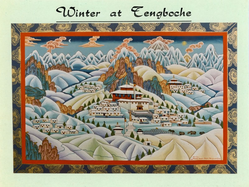 “Winter at Tengboche”: this is the first of three small works of art that I bought to help fund the rebuilding of the monastery.