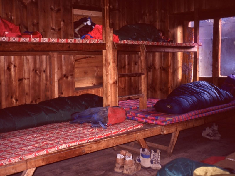 Sunday, 27 October 1991 – From Thyangboche to Namche Bazar: The Tengboche Gompa Lodge’s dormitory-style accommodation. Coincidentally, Dr Lynley Cook – the New Zealand doctor whom we’d met when we visited the hospital in Kunde on 14 October – also stayed overnight in the lodge, so I took advantage of the opportunity to ask her about the severe chest pains I was experiencing when I coughed or laughed. Using a stethoscope, she listened to me breathing, and told me that as a result of the time I had spent breathing very cold air at (comparatively) high altitude, I had cracked a couple of ribs. She also told me, of course, that nothing could be done to assist me … other than to avoid coughing and laughing. Knowing it wasn’t anything worse, though, was comforting. |