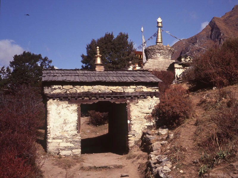 I left at Thyangboche at 9:30 am and almost immediately encountered a series of small gate houses …