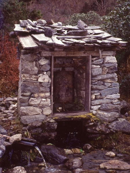 A short while later, I came across a group of small mills that used the water from streams and rivulets to turn prayer wheels that were also adorned with religious art.