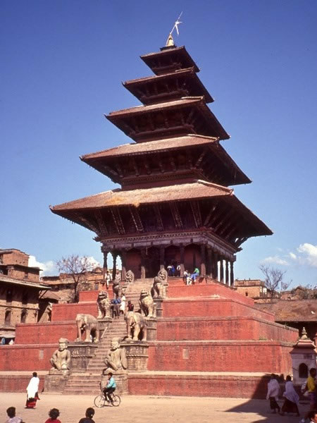 Thursday, 31 October 1991 – Bhaktapur: The day after we returned to Kathmandu from the Khumbu, we visited Bhaktapur. It’s often regarded as the best of the three medieval cities in the Kathmandu valley, and the jewel in Bhaktapur’s crown is probably the Nyatapola temple. When it was dedicated to the Goddess Laksmi, Queen of Water, more than two hundred years ago, its doors were sealed, never to be opened again. What’s inside the temple is a mystery. |
