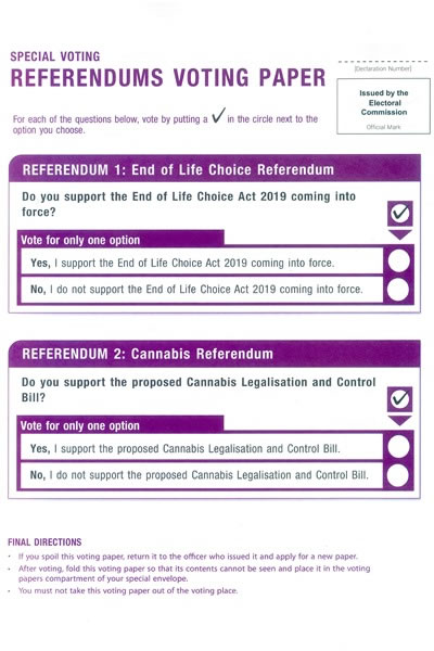 The results of REFERENDUM 1, the End of Life Choice Referendum, were