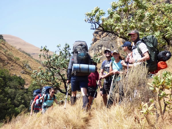 Ten minutes later we met this group of about ten hikers retreating from a planned ascent of Mafadi. The strength of the wind gusts that they experienced the previous night while camping near Centenary Hut had led them to abandon the climb.