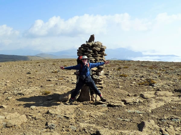 … this is a photograph that Otto took of me at one of the large border cairns. My right half (which is, of course, on the left in this picture) is in Lesotho, and my left half is in South Africa.