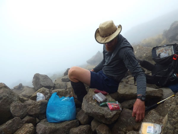 However, the weather quickly deteriorated. Our route was steep and slippery, but – thankfully – Otto gave me a helping hand and twice belayed me down particularly tricky pitches. We stopped for lunch at noon …