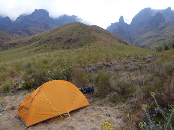 Our third and final campsite was the nicest (and softest!) of the three. The spur we had descended after traversing across to it from Leslie’s Pass can be seen directly above my tent.