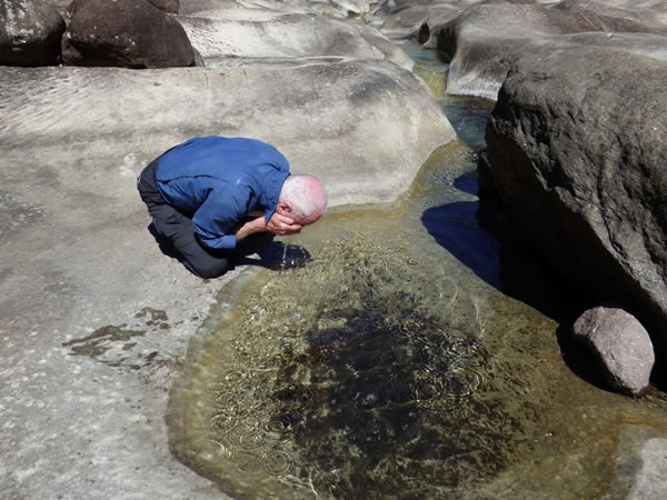 I took advantage of the crystal-clear, clean water at Marble Baths to wash my face thoroughly for the first time in three days!