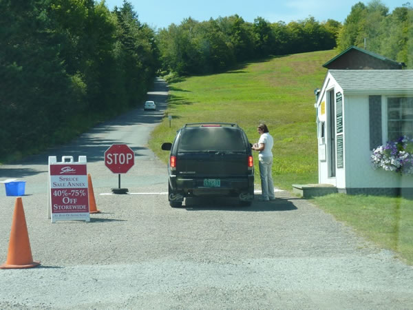 Waiting in line to pay the toll in order to head on up the ski-field road.