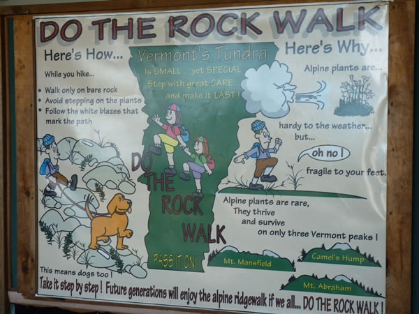The Mt Mansfield Visitor Centre also contained first of many notices about doing “the rock walk”.