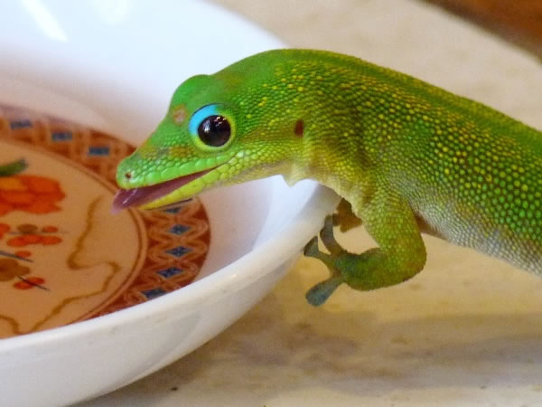 Madagascar gold dust geckos also live in Rosemary and Tom’s house, and this one clearly felt at home.