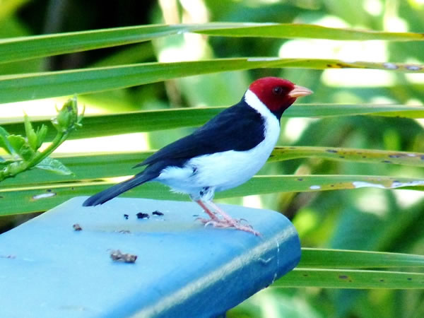 A yellow-billed cardinal on Tom and Rosemary’s deck.
