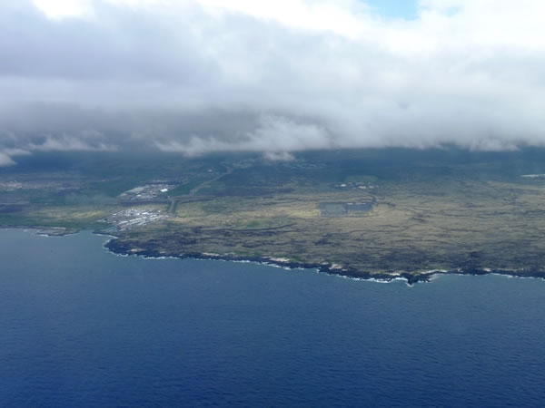 This was the first view we had – or, more accurately, didn’t have – of Mauna Kea when Eric and I flew into Kona airport on Sunday morning, 2 February 2014. Thick clouds covered the mountain. The West Hawaii Today newspaper reported that rainfall had been “above average” in West Hawaii in January, and that “the wet weather [had] also brought heavy snow to the summits of Mauna Kea and Mauna Loa.” |
