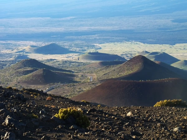 … I paused and took this photograph looking back down onto the cinder-cones and plains below us. The Visitor Center is just out of sight below the ridge in the left-hand foreground.