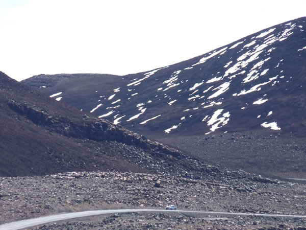 This is a telephoto view looking south and down onto the Mauna Kea access road.