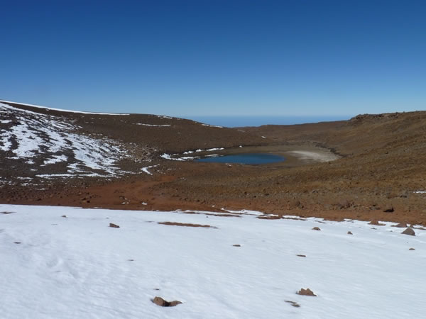 … Lake Waiau (13,020 feet / 3,968 metres above sea-level) in the centre of Pu’u Waiau’s cinder-cone.