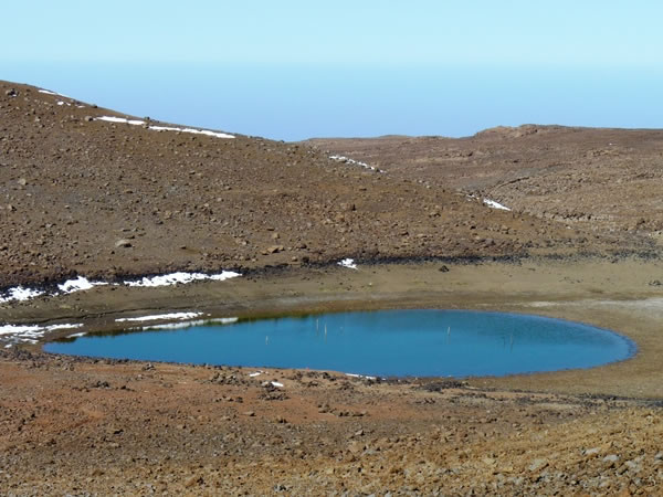 Because water drains rapidly through volcanic cinders and scoria, Lake Waiau is something of a geological oddity on Mauna Kea. It’s a something of a mystery as to why the lake exists and also why it has been losing water lately.