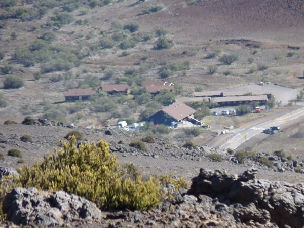 At 3:15 pm we could see the Visitor Center below us (but we still had a long way to go: this picture was taken using my camera's maximum telephoto utility and the Visitor Center’s almost 2,000 vertical feet below us).