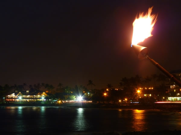 … and a good view from our seaside table of the Kailua-Kona waterfront at night.