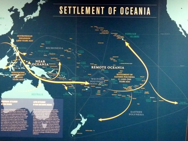The Hawaiian Hall also contains this large map illustrating the peopling of the Pacific.