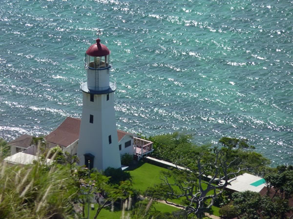 Near the top of the path and steps to the summit, there’s a good view down onto the Diamond Head lighthouse.