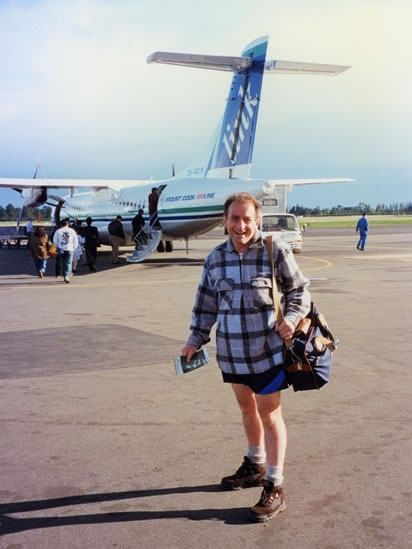 David Novitz about to board a Mount Cook Airline flight from Christchurch to Queenstown on Thursday, 4 April 1996.