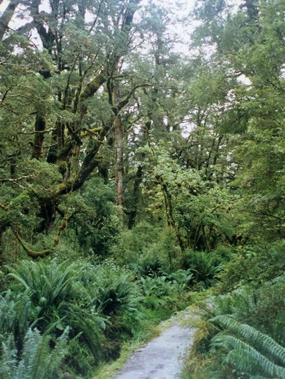 The Milford Track is, not surprisingly, a well-maintained track that goes through some beautiful old-growth forest.