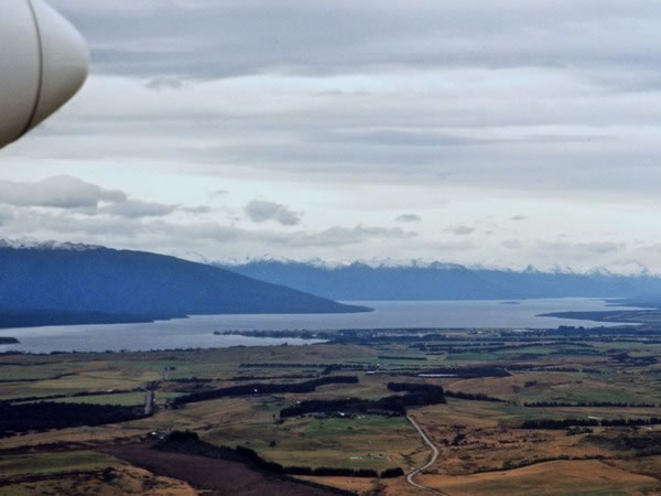 Shortly after we took off from the Te Anau / Manapouri airport, I took this photograph looking north towards Te Anau, the lake, and Fiordland’s snow-capped mountains. David and I had spent four superb days in the region doing “the finest walk in the world.” (This is the last picture in this album.) |