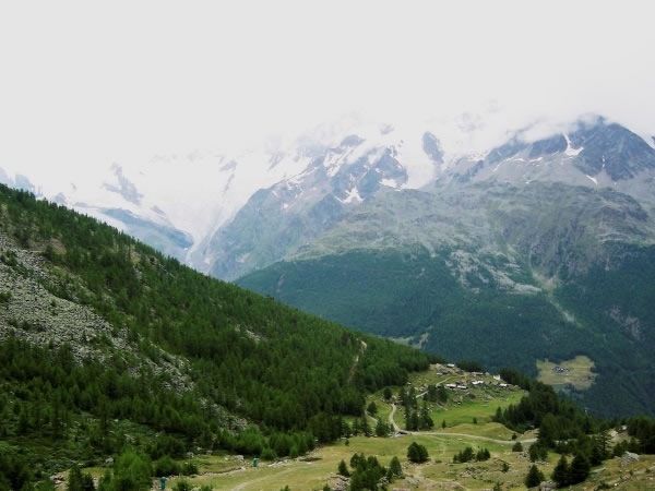 Looking down onto Kreuzboden, a very small alpine village at 2,397 metres / 7,864 feet on the lower slopes of Weissmies. Kreuzboden is well-known for its …