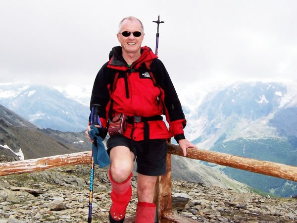 This picture of me was taken about an hour later at Hohsaas, which is 3,100 metres / 10,171 feet above sea-level.